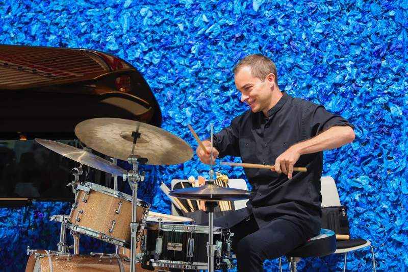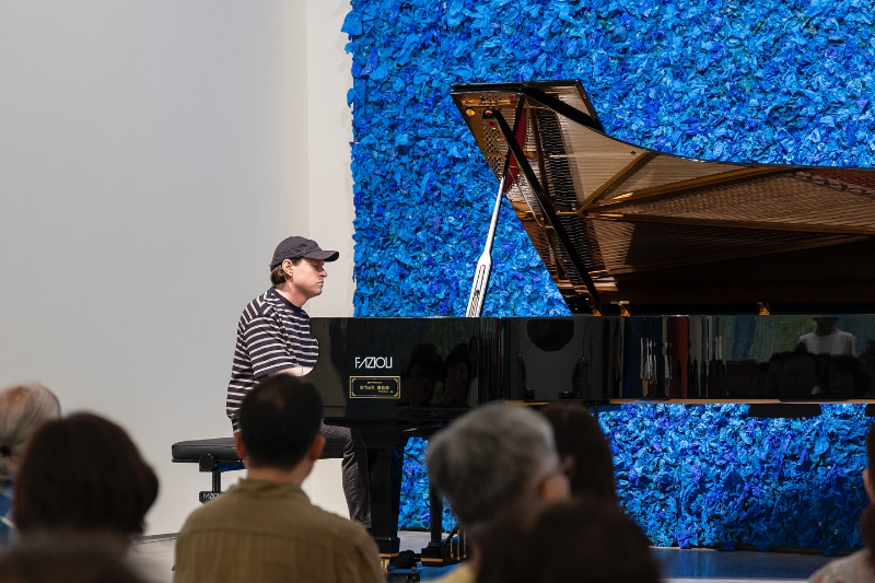 鋼琴家 Lorenz Kellhuber(羅倫茲·凱爾胡伯)與鼓手 Gabriel Hahn(韓家柏),在江賢二的藝術與園區中汲取靈感,展開一場即興的音樂演出。