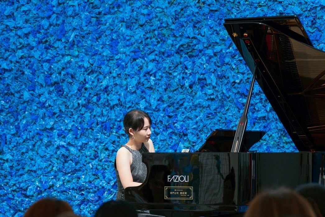 接著,鋼琴家西本佳奈美在第二展覽廳〈海的聲音〉前演奏德布西的〈月光〉,樂音就像月光灑落海面的顫動。