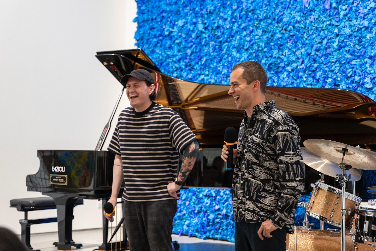 來自德國的爵士樂鋼琴家羅倫茲首次踏上亞洲舞台,第一站便來到台灣。音樂會主題「交會 (Encounter)」,意味著與誰、與什麼相遇。疫情後,兩位音樂家已有五年未曾見面,而今日的重逢更是與江賢二的畫作、以及在場觀眾的一次對話。