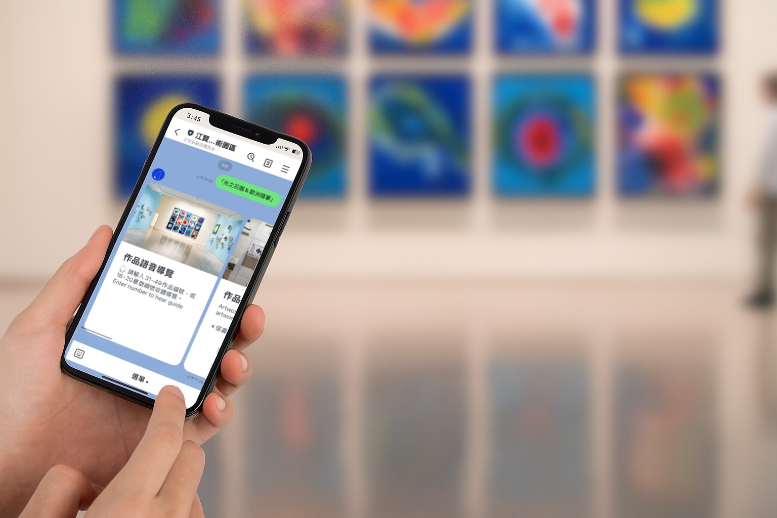 ,點選「展覽」選單並輸入作品編號,即可隨時聆聽單件作品介紹與園區共同創辦人嚴長壽先生的語音導覽。
