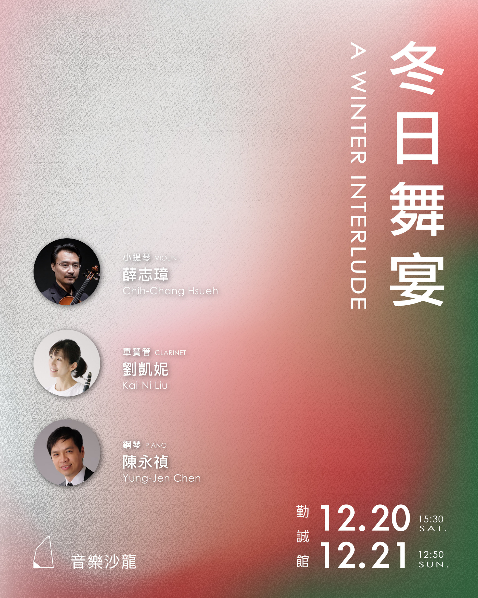 小提琴家薛志璋、單簧管演奏家劉凱妮、鋼琴家陳永禎攜手,將帶來探戈組曲與多首具有節慶氛圍的樂章。音符與江賢二的畫作相互舒展,像是專屬於此刻此地的年末祝福。