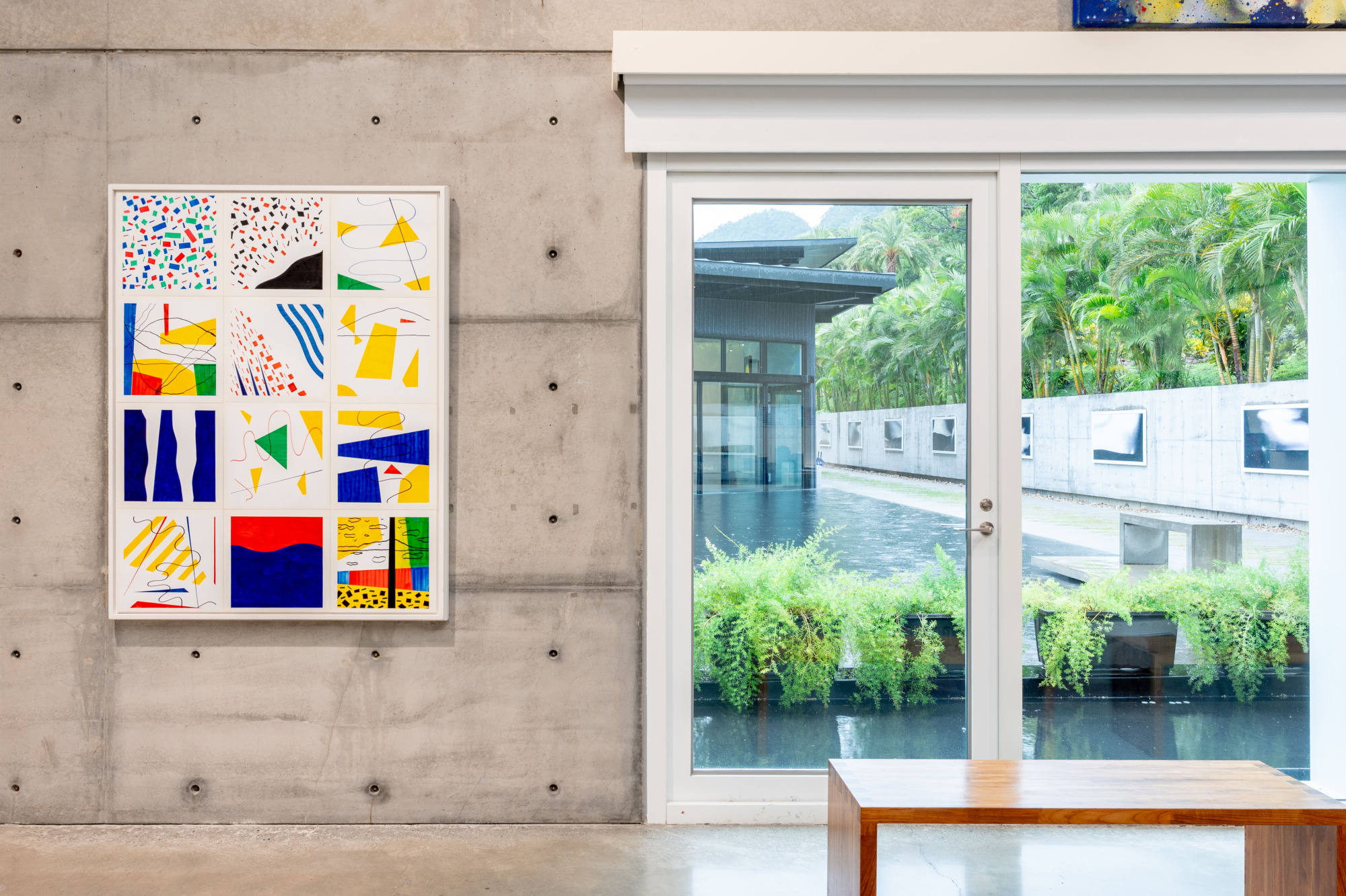 一幅幅形神飽滿的《光之花園》系列,融合了台東的斑斕多彩,又像是它四季流轉的光景;它既是海也是山、像是路邊盛放的小野花,也像是光影變幻流動生命力的海。江賢二說「這些作品形態上看起來很簡約、更俐落,丟掉了很多細節。最重要的是,這是我最近這幾年生活的心情,充滿了很強大的energy。」