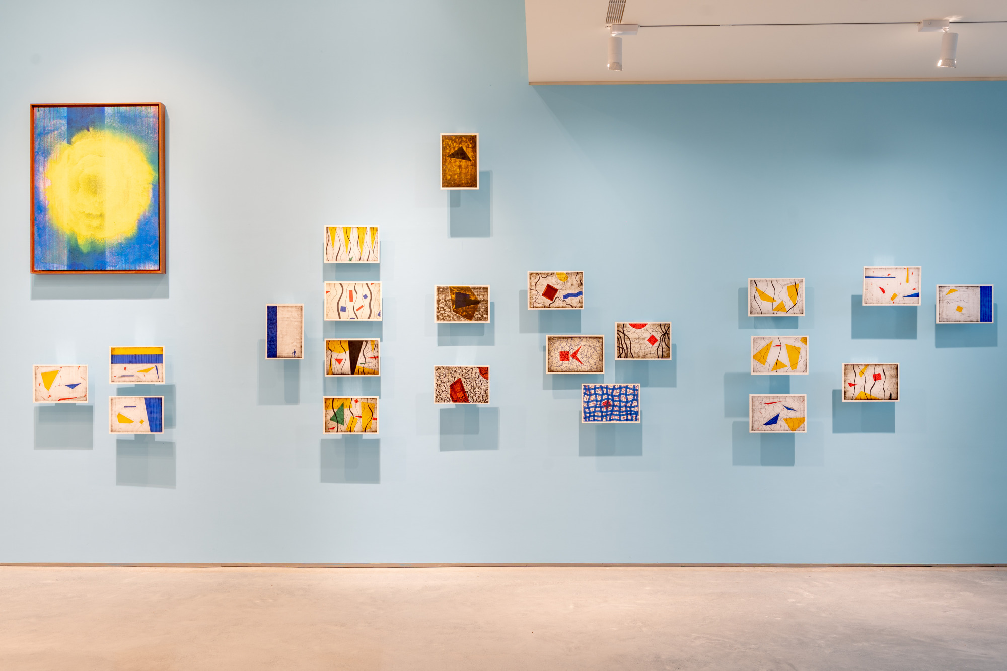 《爵士/金樽》這一系列作品有些彷彿是山崖海浪、日出月昇等金樽生活的印象片段,有些則是抽象明亮的色塊。就像這幾年,在江賢二結束一天工作,犒賞自己的「Happy Hour」喜愛聆聽的爵士樂一樣,隨性、喜悅而自在。