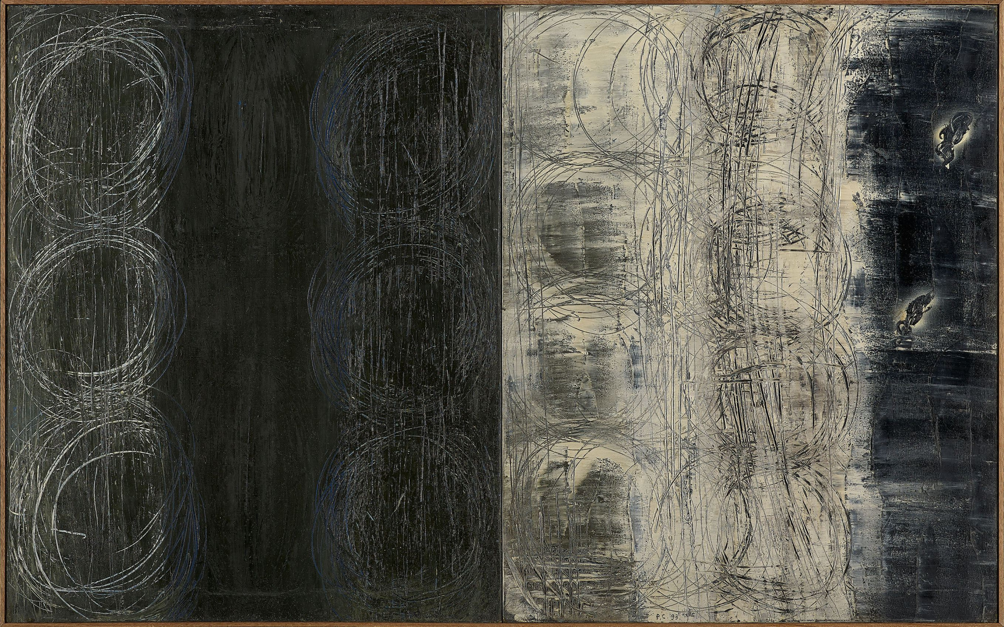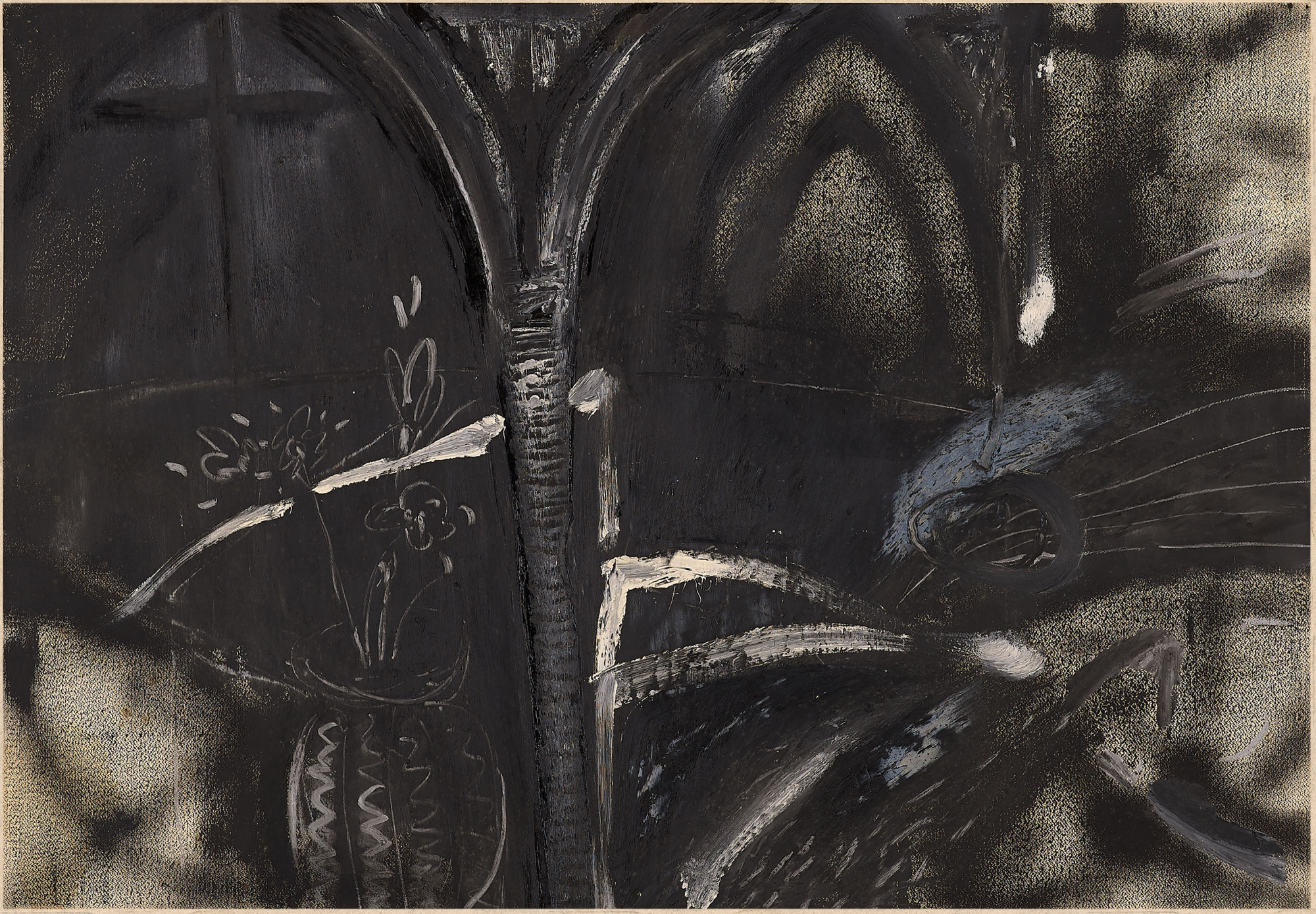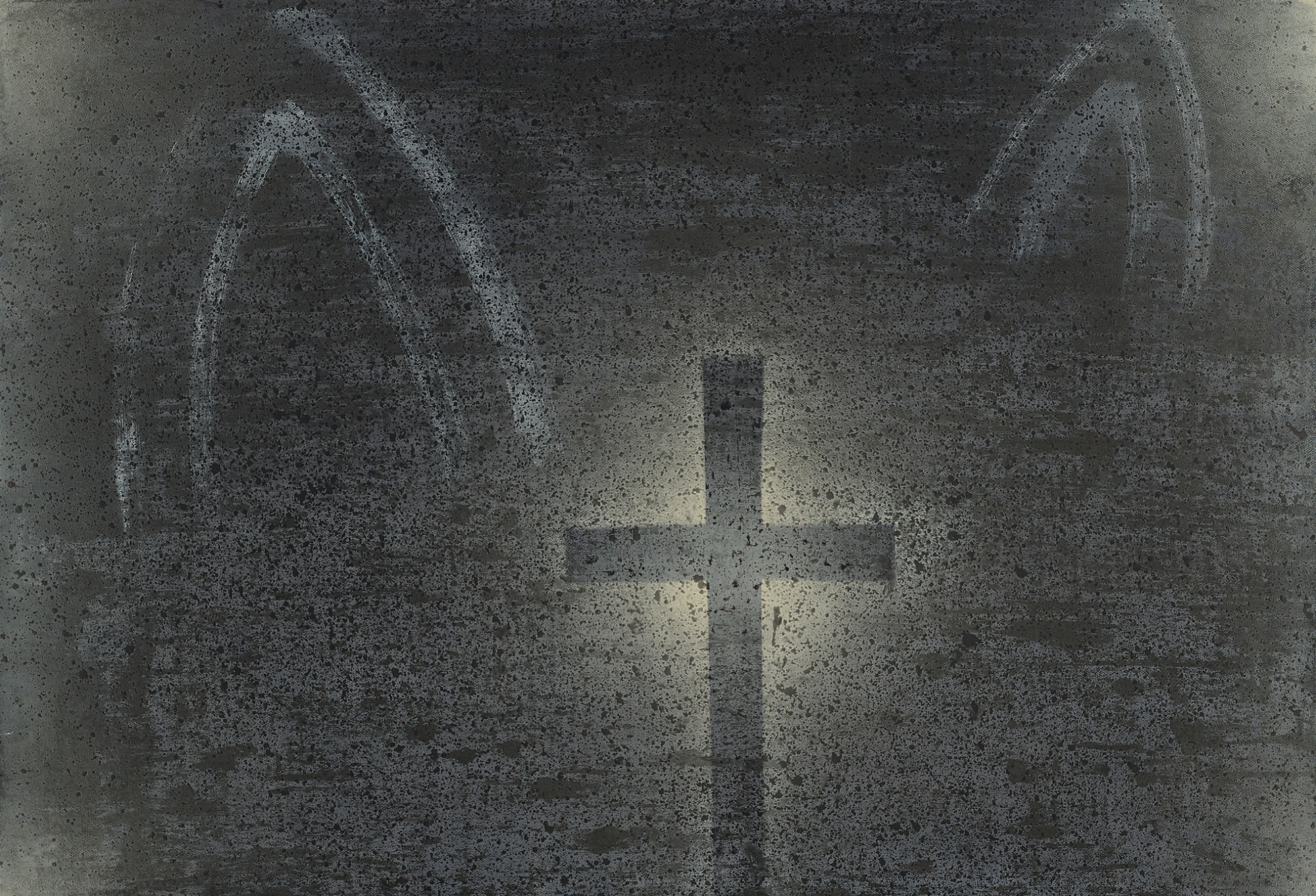 40歲|黑沉沉的巴黎聖母院,江賢二半具象半抽象的展現巨大的十字架與背後的白光,畫面虔敬的精神性像是空氣,流動其間,這似乎是在長期自我懷疑下內在對光的渴求。