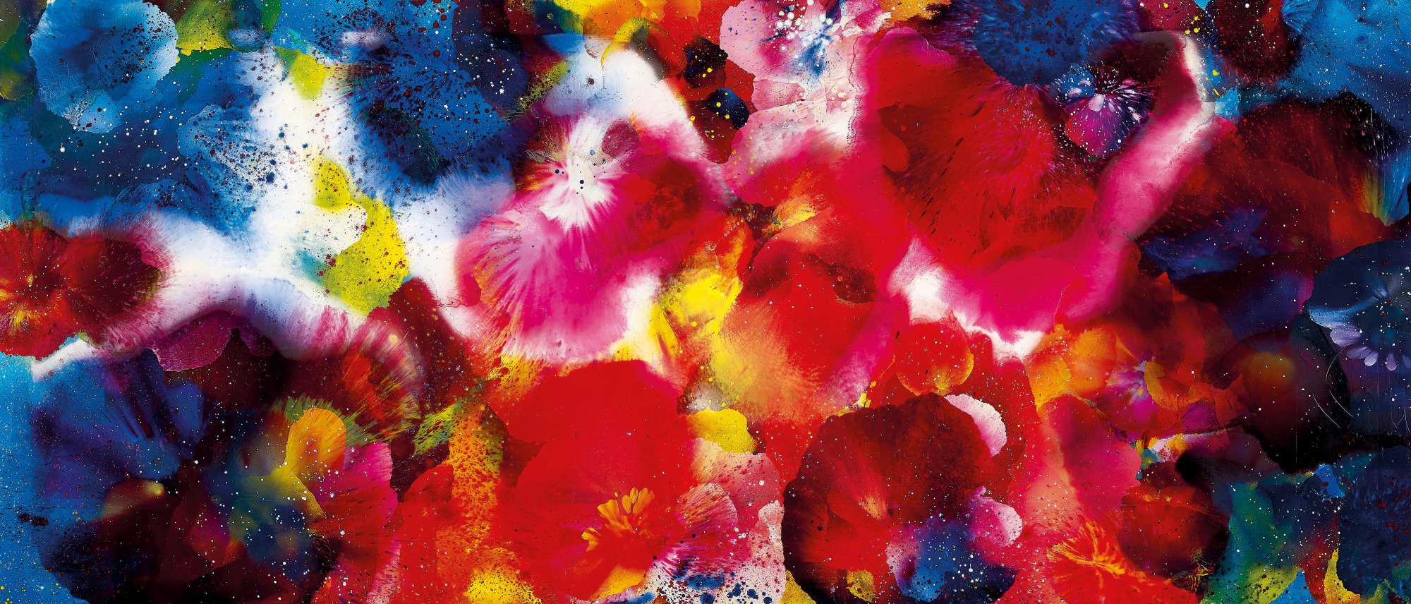 67歲|《比西里岸之夢》系列是江賢二移居台東後,最早發展的一個系列,畫面出現前所未見似繁花盛開的紅、淡粉紅、藍、亮黃色,他突破過去用色的極限,畫面瀰漫春之氣息。