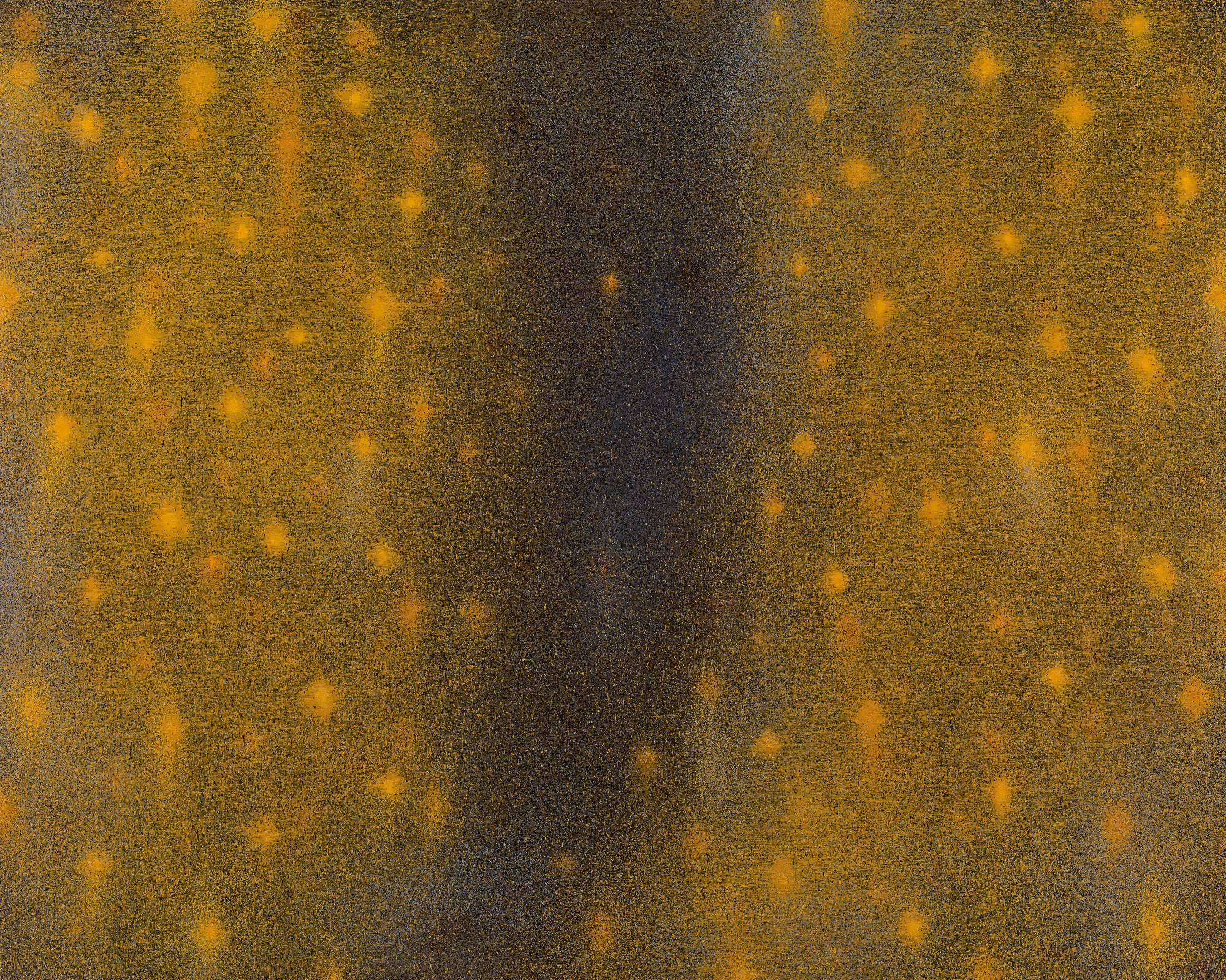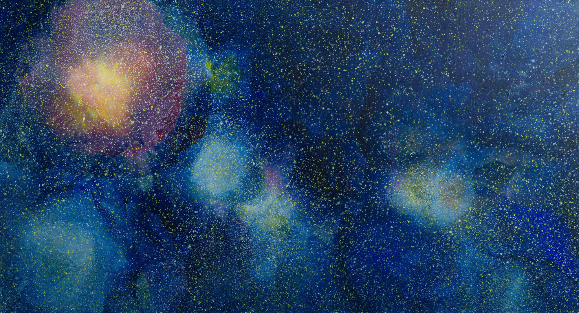 59歲|江賢二將視線推向更遼闊的宇宙,以深藍、黑與細小如星塵的光點構成畫面,對他來說,宇宙並不是一個外在景象,而是一種通往內心、更廣闊存在的道路。